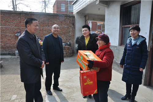 當(dāng)日上午,愛心企業(yè)商水建業(yè)為500個家庭送來了米面油等過年物質(zhì),河南省越調(diào)劇團(tuán)為農(nóng)民帶來精彩的戲曲演出,剛剛參加全省“紅色文藝輕騎兵”慰問演出回到周口的申小梅女士為村民表演了群眾耳熟能詳?shù)摹妒战獋ァ愤x段。