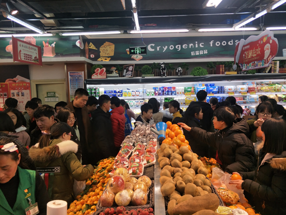 春節(jié)臨近,各大超市進入購物高峰,置辦年貨的消費者逐漸增多。為讓市民在春節(jié)期間吃上放心安全的食品,萬果園超市組織了上百人的采購團隊,分赴全國各地蔬菜水果主產區(qū)進行貨源的尋找、品種的開發(fā)、基地的考察,蔬菜已確定與山東、云南、福建、湖北、四川、海南6省20多個基地進行合作;水果已確定與山東、新疆、四川、廣西、湖北、安徽,泰國、越南“六?。▍^(qū))兩國”的30多個基地進行合作;生鮮肉蛋與國內各大生產廠家,如雙匯、雨潤、眾品、正大、柳江等廠商聯(lián)合,減少流通環(huán)節(jié),降低流通成本,保證周口市民在春節(jié)期間的生活需求。河南萬果園實業(yè)集團有限公司生鮮采購總監(jiān)趙中華介紹,為滿足市民的購物需求,自1月28日(臘月二十三)開始,萬果園市區(qū)及縣城門店將延長閉店時間,2月4日至6日(除夕至正月初二)放假,2月7日(正月初三)正常營業(yè)。