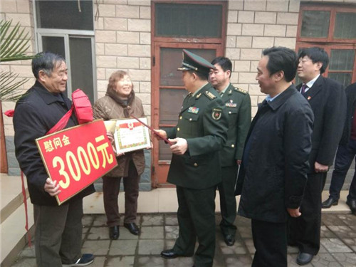 該縣擁軍優(yōu)屬“七送”活動具體為:送“功臣之家”牌匾、送立功授獎喜報、送慰問金、送慰問品、送春聯年畫、送軍屬光榮牌、送“周口好兵”宣傳卡等“大禮包”。