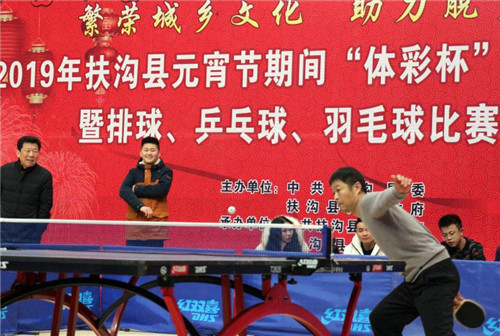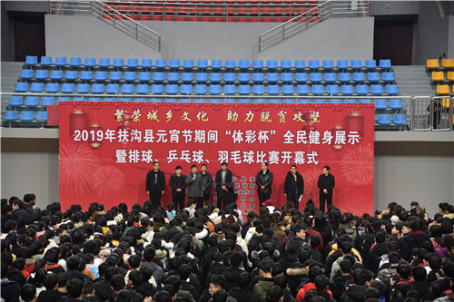 2月17日上午,元宵佳節(jié)即將來(lái)臨之際,在全縣脫貧攻堅(jiān)沖刺的關(guān)鍵時(shí)期,扶溝縣2019年元宵節(jié)“體彩杯”全民健身展示暨排球、乒乓球、羽毛球比賽活動(dòng)在縣體育館隆重開(kāi)幕?;顒?dòng)旨在豐富全縣廣大人民群眾的文化生活,助力脫貧攻堅(jiān),為實(shí)現(xiàn)“五個(gè)扶溝”增光添彩??h委常委、宣傳部長(zhǎng)馬昭才,副縣長(zhǎng)吳興華等出席開(kāi)幕式??h委宣傳部副部長(zhǎng)張根主持開(kāi)幕式。