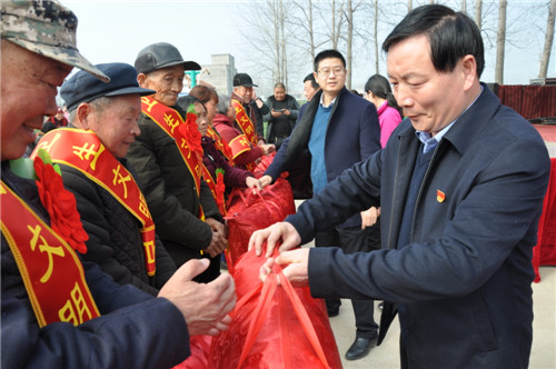 3月5日上午,商水縣化河鄉(xiāng)與縣移動公司在大王莊文化廣場召開脫貧光榮戶、孝老敬賢戶文明衛(wèi)生戶表彰暨送文化、衛(wèi)生下鄉(xiāng)活動議會。縣委常委、宣傳部長李本磊、縣工會主席盧紅兵、縣移動公司經(jīng)理黃小帆、化河鄉(xiāng)黨委書記高永強(qiáng)等出席活動現(xiàn)場。大王莊村及周邊村莊部分群眾500多人參加了活動。