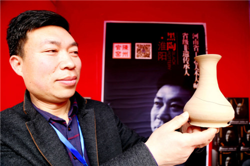 在河南省非物質文化遺產(chǎn)黑陶技藝展示臺前,代表性傳承人、淮陽縣工藝美術家協(xié)會主席張輝,正在向游客介紹黑陶的發(fā)展歷程。隨處可見的普通膠泥,經(jīng)過匠人之手便可變成精美的黑陶器具,這讓眾人感嘆不已。張輝說,這是老祖宗留下的智慧結晶,也是非物質文化遺產(chǎn)的寶貴財富,他要永遠傳承下去。