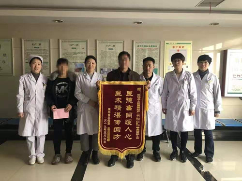 術(shù)后患者恢復(fù)良好,康復(fù)出院后,3月6日上午,患者和丈夫一起來到醫(yī)院,向住院期間給予了精準(zhǔn)治療和細(xì)心護(hù)理的婦產(chǎn)二科王皓主任、張明偉醫(yī)生及全體醫(yī)護(hù)人員贈送錦旗,以表謝意。