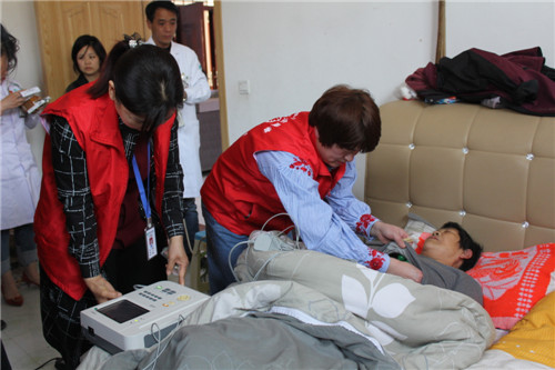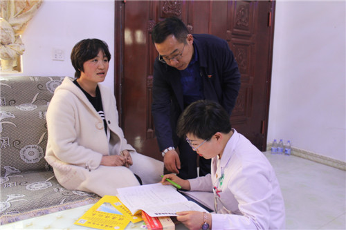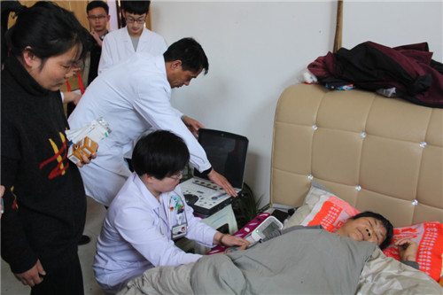 在王崗家中,專家們先后為王崗父母、妻子進行了彩超、心電圖、血壓、血糖等項目檢查,并根據(jù)檢測數(shù)據(jù),現(xiàn)場分析、研究病情,做了詳細醫(yī)囑,還為他們送了包含各種項目的健康體檢表。