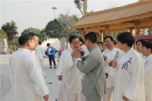 在李廣的示范帶動下,縣財(cái)政局先后又有10多人加入其中,形成了一個(gè)龐大的太極拳義務(wù)傳授團(tuán)隊(duì)。幾年來,李廣團(tuán)隊(duì)每天早晚堅(jiān)持頭頂著晨曦、沐浴著夕陽,義務(wù)傳授太極拳,弘揚(yáng)傳播老子文化,乘借著鹿邑既定的“產(chǎn)業(yè)興城、文化立縣”發(fā)展戰(zhàn)略東風(fēng),持續(xù)為唱響“老子故里、道家之源、道教祖庭、李姓之根”四大文化品牌添磚加瓦、吶喊助威。