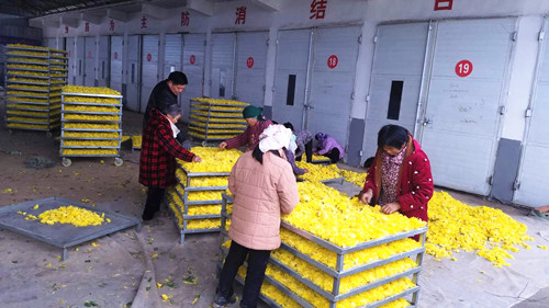“我們提供優(yōu)質(zhì)種苗給種植戶,并且提供免費(fèi)的技術(shù)指導(dǎo)以及技術(shù)培訓(xùn),群眾在種植金絲皇菊的過程中遇見問題都可以隨時(shí)來咨詢;在金絲皇菊成熟后我們會(huì)對(duì)老百姓所種植的菊花進(jìn)行保底收購,保證種植戶的利潤不受影響。”據(jù)了解,目前僅張辛行政村就有菊花種植合作社3個(gè),種植金絲皇菊、雪菊、貢菊等各類菊花近千畝,帶動(dòng)全村貧困人員由原來的303戶、998人下降至現(xiàn)在的7戶、18人,全村人靠種植菊花實(shí)現(xiàn)創(chuàng)收致富。