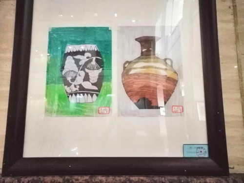 在文物繪畫作品展出區(qū)域,孩子們親手繪制出的近百幅文物繪畫作品,用畫筆與歷史對話,感悟著中華民族先人們的智慧結(jié)晶。