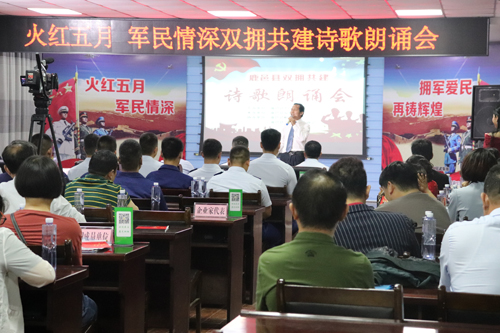 他說,“火紅五月,軍民情深”雙擁共建詩歌朗誦會,是加強(qiáng)軍政團(tuán)結(jié)、軍民團(tuán)結(jié)的一次重要活動,也將進(jìn)一步加快推進(jìn)軍民融合深度發(fā)展,圍繞新形勢下推進(jìn)雙擁工作的新要求,以基層雙擁工作為重點(diǎn),拓寬新領(lǐng)域,豐富新內(nèi)容,培育新亮點(diǎn),全面提高雙擁工作水平。