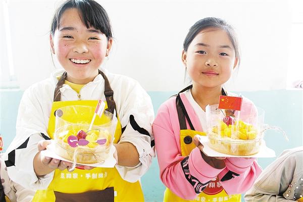 為慶?!傲弧?,日前,團市委組織我市青年志愿者和愛心人士到西華縣李方口小學和幾十名留守兒童一起做蛋糕。圖為留守兒童展示自己做的蛋糕。記者 王凱 攝