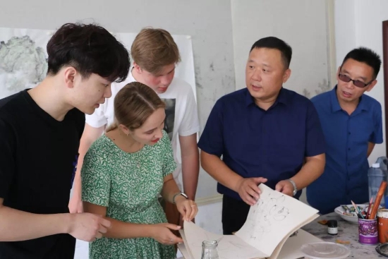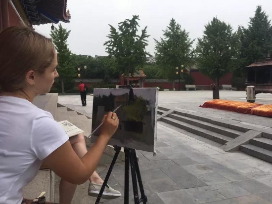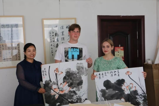 鹿邑本土畫(huà)家劉龍飛畫(huà)的花鳥(niǎo)栩栩如生引起俄羅斯青年畫(huà)家們的嘖嘖稱(chēng)嘆。兩位青年畫(huà)家通過(guò)翻譯告訴記者,中國(guó)畫(huà)歷史悠久、博大精深,看到兩位老師的畫(huà)作形神兼?zhèn)洌瑲忭嵣鷦?dòng),真是不虛此行,感謝贈(zèng)送的佳作,他們一定珍藏。據(jù)悉,本次活動(dòng)他們將以國(guó)際藝術(shù)志愿者的身份、以西方人的視角描繪老子故里的美景,他們走進(jìn)明道宮、太清宮等景點(diǎn)實(shí)地寫(xiě)生,并走美術(shù)學(xué)校為孩子們輔導(dǎo)繪畫(huà)并帶來(lái)世界名校的繪畫(huà)理念。