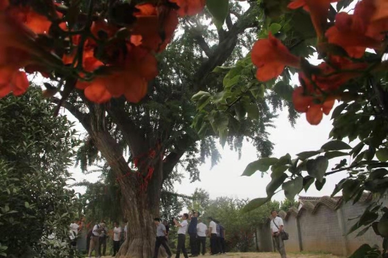 在許村千年白果樹(shù)下,光武帝劉秀目光堅(jiān)毅、深情凝重,仿佛還在回味當(dāng)年金戈鐵馬的崢嶸歲月。采風(fēng)團(tuán)成員在樹(shù)下的馬蹄印前佇立觀賞,聆聽(tīng)沉思。
