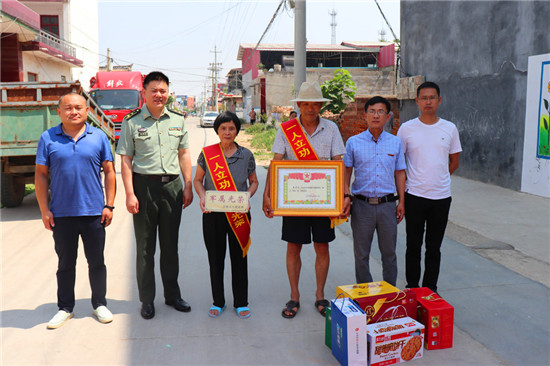 縣人武部、退役軍人事務(wù)局、雙擁辦等相關(guān)單位,通力協(xié)作,深入全縣465個(gè)行政村(居委會(huì)),為軍人軍烈屬發(fā)放光榮牌、義務(wù)兵家庭優(yōu)待金發(fā)放。截至目前,全縣23000多“軍人軍烈屬光榮牌”,已經(jīng)發(fā)放到戶(hù)到人。在“軍人軍烈屬光榮牌”發(fā)放中,奉母鎮(zhèn)奉三村現(xiàn)役軍人李中州榮立二等功,縣人武部、退役軍人事務(wù)局、雙擁辦組織到李中州家掛光榮牌并送喜報(bào),看望慰問(wèn)李中州的父母。李中州的父親說(shuō):“中州在部隊(duì)已服役20多年,曾多次獲得三等功,這次又榮獲二等功,這是黨和軍隊(duì)培養(yǎng)的結(jié)果。今天縣領(lǐng)導(dǎo)來(lái)家慰問(wèn)我們,感謝黨和政府對(duì)我家的關(guān)心照顧,我們將囑咐孩子努力工作,為軍隊(duì)事業(yè)再做貢獻(xiàn),為家鄉(xiāng)爭(zhēng)光添彩。”