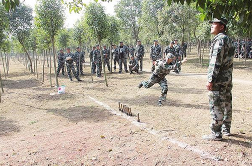 民兵應(yīng)急分隊在進行手榴彈投擲訓(xùn)練