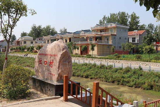 天藍(lán)水清,綠樹成蔭,九曲橋旁邊的岸上開滿了格?;ǎ粫r(shí)有水鳥從水面掠過(guò),這不是某個(gè)大城市的濕地公園。這是位口村的“水上公園,”如今已經(jīng)成了村里的標(biāo)志性建筑。夜幕降臨,村民們?nèi)齼蓛删墼诤舆吷⒉?、乘涼?!庇腥司幜诵∏焊裆;▋合蜿?yáng)開,歡迎您到位口來(lái);扶貧攻堅(jiān)結(jié)碩果,村民感恩黨關(guān)懷……