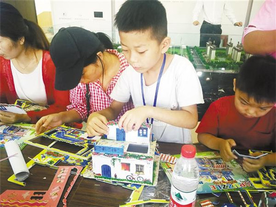 9月7日,約100名周口報(bào)業(yè)商水小記者在商水縣商寧路建業(yè)城售樓部參加“愛(ài)家愛(ài)商水”手工拼裝房大賽活動(dòng)。
