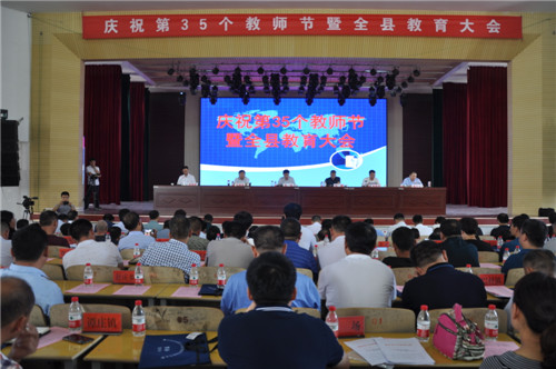9月9日上午,商水縣召開慶祝第35個(gè)教師節(jié)暨全縣教育工作大會(huì)。縣長田林,縣委副書記、政法委書記張峰,縣人大 常委會(huì)主任李德來,縣政協(xié)主席孫培忠,縣委常委、常務(wù)副縣長胡國勝,副縣長單正義等出席會(huì)議。
