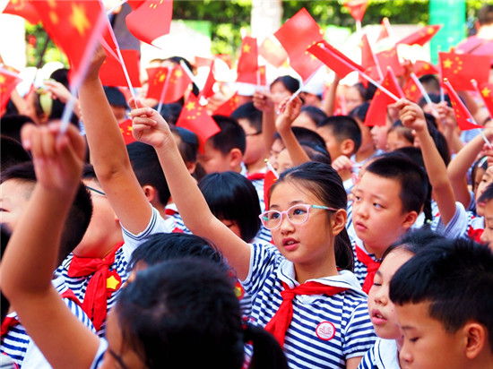 “我和我的祖國,一刻也不能分割……”9月6日上午,長沙市未成年人“傳承紅色基因 向國旗敬禮”主題教育實(shí)踐活動(dòng)啟動(dòng)儀式在芙蓉區(qū)大同小學(xué)正式舉行,伴隨著《我和我的祖國》的美妙旋律,上千名青少年齊聲高歌,鮮艷的五星紅旗一起舞動(dòng),匯成一片紅色的海洋。