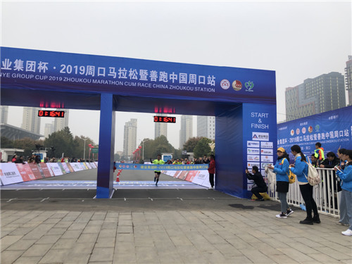 周馬開賽1小時16分鐘后,來自鄭州的半程馬拉松項目選手馬其寶率先沖過終點,用時1小時16分鐘42秒,勇奪半程馬拉松男子組冠軍。