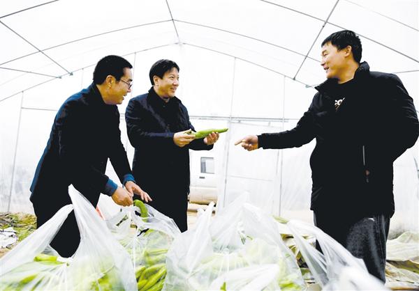 近日,周口報業(yè)傳媒集團幫扶村——淮陽縣馮塘鄉(xiāng)劉莊村的扶貧蔬菜大棚最后一棚辣椒采摘上市。據了解,這里產的辣椒個頭大、口感好,很暢銷。圖為周口報業(yè)傳媒集團黨委副書記、總編輯、周口日報社總編輯顧玉杰(中)向種植戶了解辣椒銷售情況。 記者 梁照曾 攝