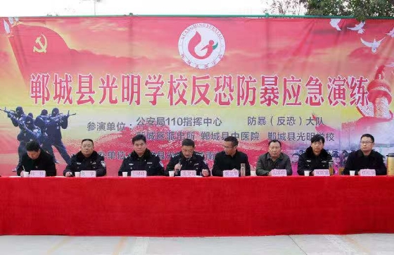 演練結(jié)束后,縣反恐辦主任、公安局副政委朱衛(wèi)兵說,此次演練貼近實戰(zhàn),既鍛煉了學(xué)校安保隊伍,又增強了師生安全防范意識,檢驗了光明學(xué)校切實可行的反恐防暴預(yù)案,進一步提高了學(xué)校反恐防暴等突發(fā)事件反應(yīng)和處置能力。結(jié)合鄲城反恐實際,朱衛(wèi)兵強調(diào),要增強反恐防暴意識,提高政治站位,時刻繃緊學(xué)校反恐處突這根弦;要加強反恐隊伍建設(shè),縣公安反恐隊伍要時刻保證黨和人民需要時拉得出,沖得上,打得贏,勇作為;要牢固樹立平安底線思維,嚴(yán)厲打擊暴恐犯罪行為;要充分認(rèn)識做好應(yīng)急處理突發(fā)性反恐工作的極端重要性,著力提高處置突發(fā)事件和暴恐行為的能力,增強師生反恐防暴意識;要進一步強化學(xué)校安保隊伍建設(shè),努力打造一支素質(zhì)過硬、反應(yīng)迅速、處置有力的應(yīng)急處突精干隊伍。