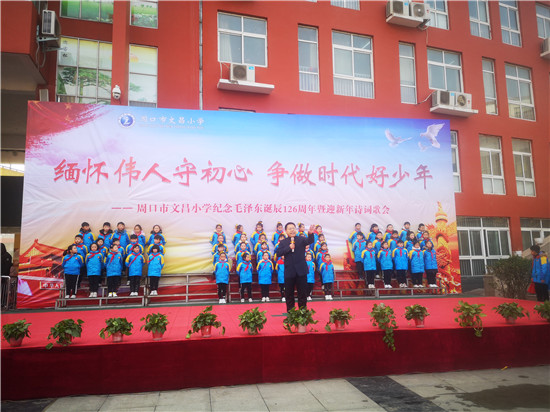 12月26日,是毛澤東誕辰126周年紀(jì)念日。為深切緬懷偉大領(lǐng)袖毛澤東,弘揚(yáng)革命精神、民族精神和愛國主義精神,文昌小學(xué)舉行了紀(jì)念毛澤東誕辰126周年暨迎新年詩詞歌會。