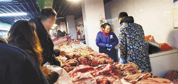 市民在選購牛肉和豬肉。 見習(xí)記者 苑美麗 攝