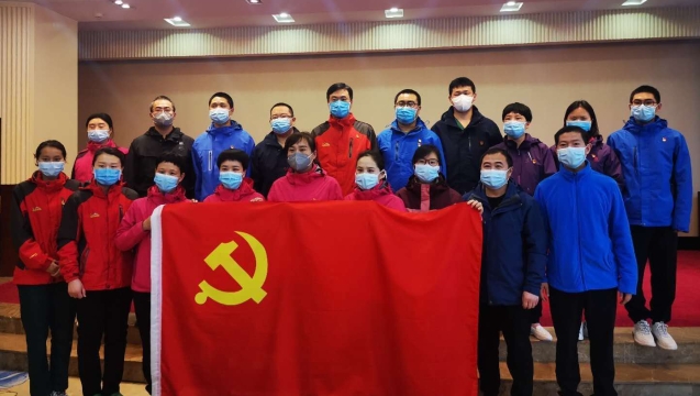 3月19日,周口援鄂醫(yī)療隊(duì)周口市中心醫(yī)院祁文麗、徐貴琴、解玉東、王亞麗、王玉才、王冰清6名隊(duì)員,站在鮮紅的黨旗面前莊嚴(yán)宣誓志愿加入中國共產(chǎn)黨。