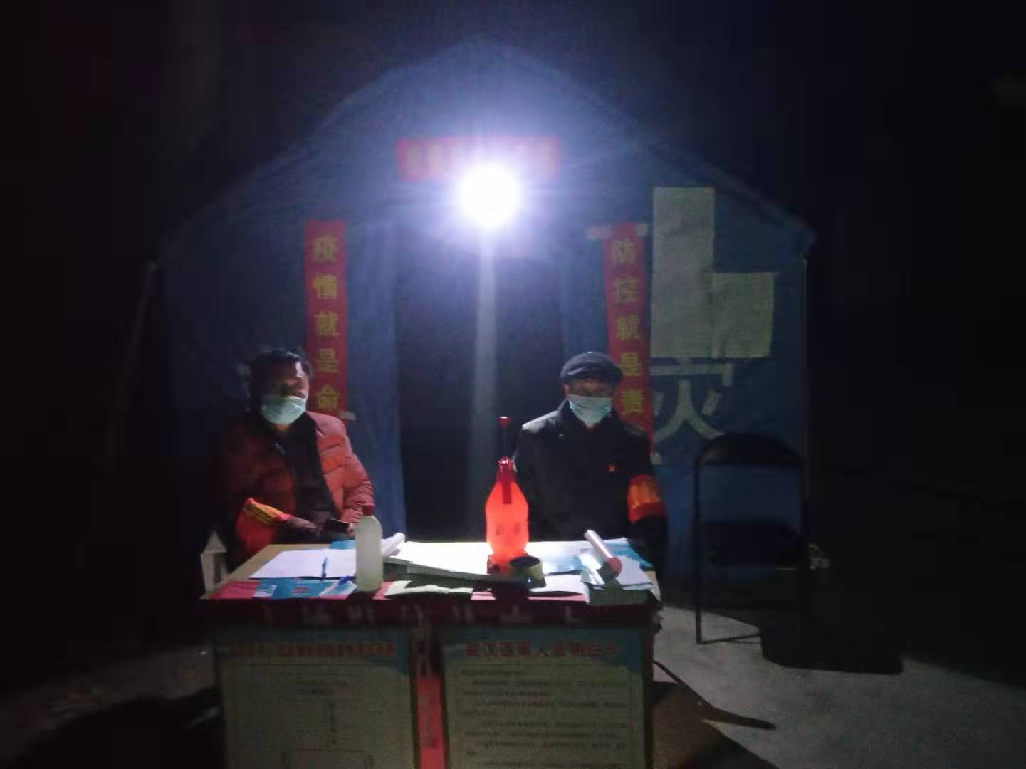 北岳村是白寺鎮(zhèn)最大的村,有大小出村路口20多個(gè),疫情防控難度大。該村除村干部、村醫(yī)以外,又動(dòng)員了教師、黨員、志愿者80余人參與卡點(diǎn)值班。自1月26日大年初二設(shè)立卡點(diǎn)以來(lái),24小時(shí)都有人值班,吃飯輪班,有的把飯送過(guò)來(lái)吃。晚上留專(zhuān)人住在帳篷里。9天來(lái),這個(gè)卡點(diǎn)已累計(jì)勸返人員280人次,勸返車(chē)輛80多輛次,登記進(jìn)出村莊人員430人次。