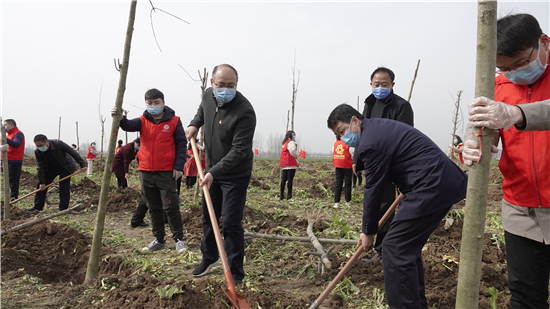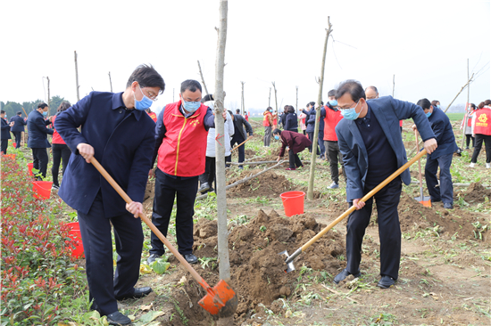 三埋土、兩踩實、一提根……三川大地春潮涌,植樹造林正當時。3月12日上午,鄲城縣四個班子領(lǐng)導(dǎo)崔衛(wèi)國、李建軍、王偉等和廣大志愿者、群眾一起來到皇姑河畔義務(wù)植樹現(xiàn)場,揮鍬鏟土,栽植新綠,為鄲城大地再添一片綠意。
