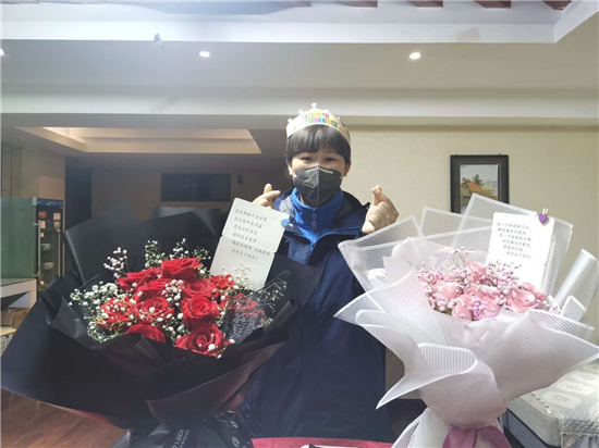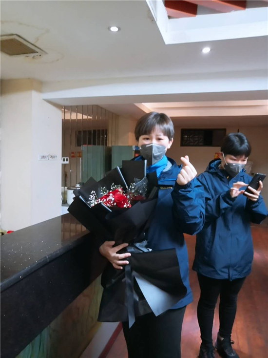 隊(duì)伍集合完畢,接下來的一幕令許聽聽始料未及。來自當(dāng)?shù)厣鐓^(qū)的工作人員,手捧蛋糕、鮮花,唱著生日歌,來到許聽聽面前,向她致以生日祝福。特殊時期,身處抗疫一線,忙于照顧病人,許聽聽此前對自己的23歲生日沒有任何憧憬,她告訴記者,其實(shí)她當(dāng)天沒想起來是她的生日,面對突如其來的生日祝福,許聽聽說:“當(dāng)時的心情既激動又感動?!薄?/p>