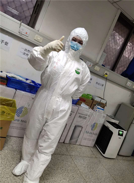 隨著大部分患者病愈出院,3月19日病區(qū)合并,周口港區(qū)援鄂醫(yī)療隊(duì)在駐地休整一天。因希望能在抗疫一線光榮加入共產(chǎn)黨,當(dāng)天上午許聽聽正利用閑暇時間,在宿舍寫入黨申請書,接到醫(yī)療隊(duì)集合的通知后,火速入列。