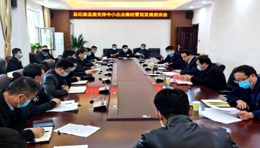 今年3月14日、16日,縣委常委、紀(jì)委書記、監(jiān)委主任胡友濤分別主持召開支持中小企業(yè)穩(wěn)經(jīng)營促發(fā)展座談會、紀(jì)檢監(jiān)察系統(tǒng)支持企業(yè)發(fā)展政策落實情況監(jiān)督檢查工作推進會,多次到金丹科技、百年康鑫等企業(yè)調(diào)研指導(dǎo),現(xiàn)場辦公、解決問題,推動工作落實。3月17日、18日,縣紀(jì)委副書記、監(jiān)委副主任趙玉祥分別召開了縣紀(jì)委監(jiān)委協(xié)作區(qū)區(qū)長、部分派駐紀(jì)檢監(jiān)察組組長會議,近一步明確任務(wù),壓實責(zé)任,先后到宜路鎮(zhèn)、秋渠鄉(xiāng)等鄉(xiāng)鎮(zhèn)督促指導(dǎo)各鄉(xiāng)鎮(zhèn)紀(jì)委開展支持企業(yè)發(fā)展政策落實情況監(jiān)督檢查工作。
