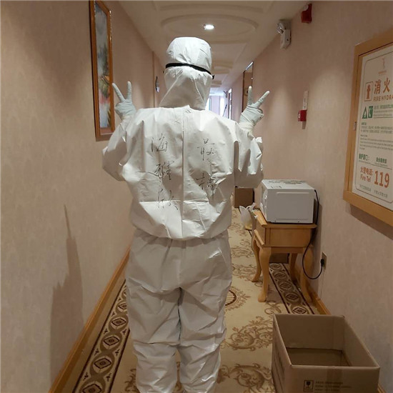 “我是護(hù)士,現(xiàn)在武漢正是最需要醫(yī)護(hù)人員,我要去武漢盡一份力量?!痹谡f服了家人與醫(yī)院領(lǐng)導(dǎo)后,2月17日 海雅欣與北京、海南等地6名志愿者在湖北大悟縣服務(wù)區(qū)聚合,2月18日到武漢東湖高新區(qū) 濱湖社區(qū)衛(wèi)生服務(wù)中心佳園路如家隔離酒店進(jìn)行志愿者服務(wù)。先后參與了東湖高新區(qū)隔離點(diǎn)病人生命體征測(cè)量并照 顧病人日常生活需要;濱湖社區(qū)衛(wèi)生服務(wù)中心所屬病人咽拭子核酸檢測(cè)采樣;湖北省人民醫(yī)院東院區(qū)發(fā)熱門診患者 信息登記、分流疏導(dǎo)、聯(lián)系病人所屬社區(qū)安排隔離;東湖高新區(qū)發(fā)熱門診閉關(guān)等工作。