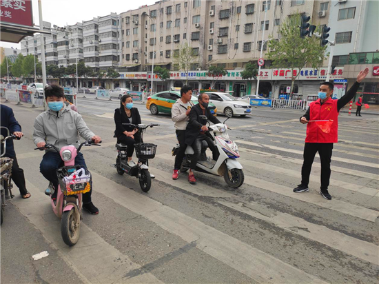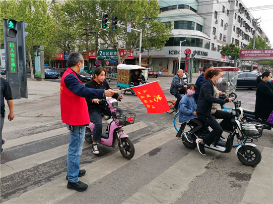活動(dòng)中,機(jī)關(guān)、社區(qū)十余名志愿者穿著紅馬甲,手持小紅旗到交通路與五一路、六一路交叉口開展文明交通勸導(dǎo)。志愿者們對(duì)部分市民闖紅燈、亂穿馬路、騎電動(dòng)車打電話等不安全的交通行為進(jìn)行勸阻,耐心引導(dǎo)行人和非機(jī)動(dòng)車輛遵守交通規(guī)則,并協(xié)助交警維持十字路口交通秩序。