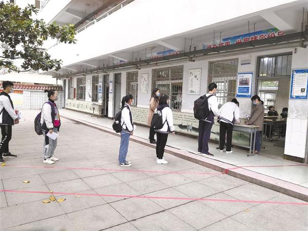 “復(fù)學后,周口四中實行小班教學,每個班不超過35人,每個人前后左右間隔不低于1米,每個人進入教室時需要測量體溫?!敝芸谒闹懈毙iL蘇飛告訴記者,班級一分為二,教師的工作量成倍增加,但是,學校在前期做了大量的教學準備工作,合理安排初三年級的課程表,保證每個班、每節(jié)課都有老師進行現(xiàn)場教學和現(xiàn)場輔導(dǎo)。