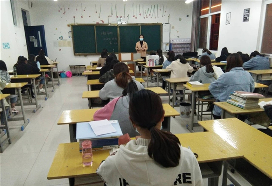 4月20日,學(xué)生報到。在校外廣場,有專業(yè)教師耐心引導(dǎo),學(xué)生掃描健康碼進行登記,間隔一米以上有序排隊,電子測溫后進入消毒區(qū)域。進入校門前簽字確認,再次測溫,進行身體和物品消毒方可進入校園,學(xué)生找到自己專業(yè)班級登記確認后進入宿舍。就餐時單人單桌、同向按號進餐。 4月21日,開學(xué)首日上午播放省教育廳制作的疫情防控宣傳片。院長侯營坡安排部署近期教學(xué)和防疫工作。下午各專業(yè)繼續(xù)進行疫情防控知識普及、愛國主義教育、健康教育、心理疏導(dǎo)、食品安全教育等,由復(fù)學(xué)方案指定的教師分別授課。晚課時間召開主題班會,班主任具體負責(zé),講解老師參加,采取師生互動,學(xué)生人人發(fā)言,讓學(xué)生進一步懂得防控疫情的重要性及防控措施方法。學(xué)生上課實行單人單桌,保持一定距離,課前測試體溫,拒絕發(fā)熱學(xué)生進入教室,做到教室通風(fēng),師生戴口罩,下課后不聚集,有序休息離開教室。教務(wù)處及各專業(yè)負責(zé)教學(xué)和疫情防控情況的督導(dǎo)。