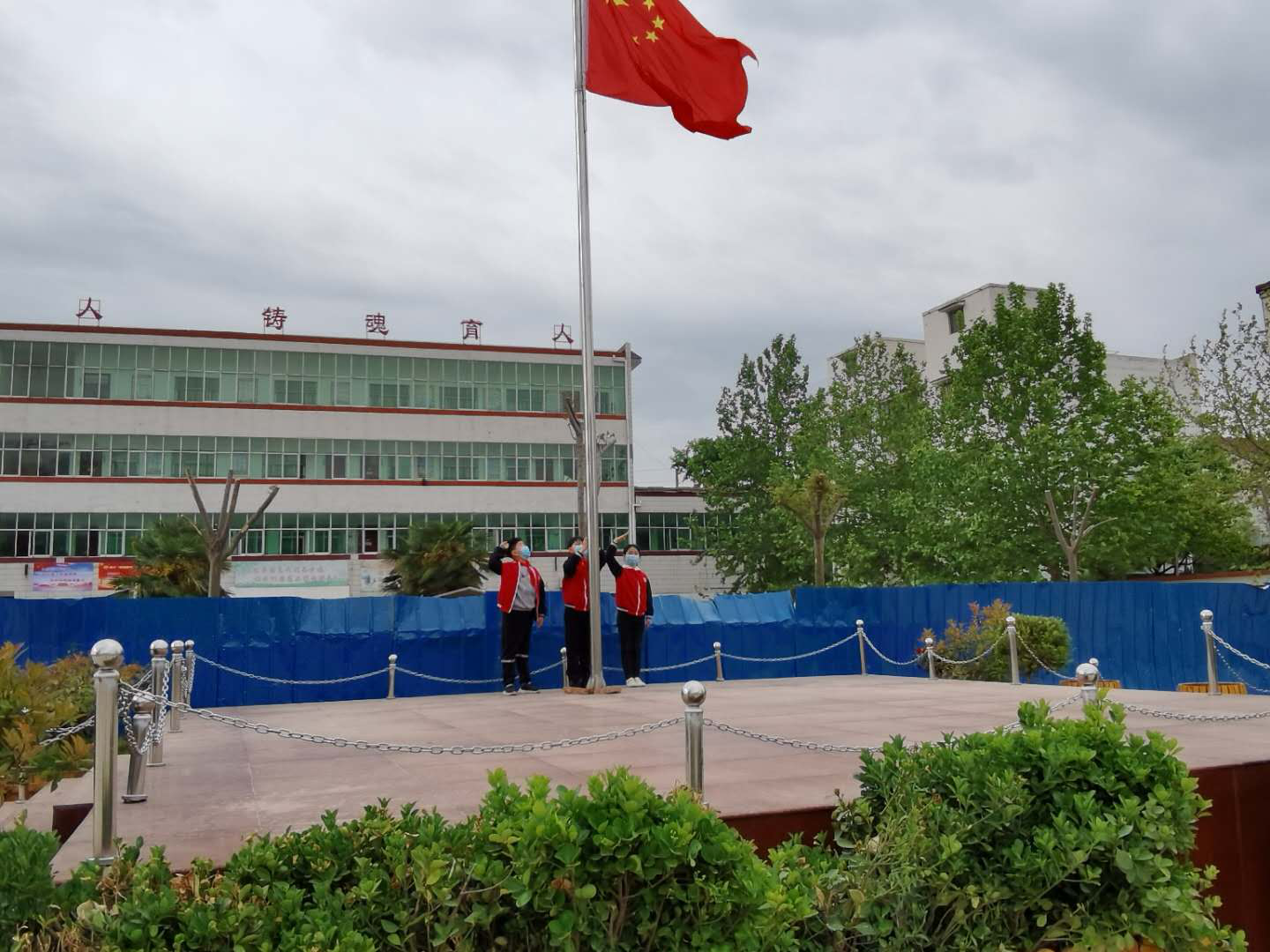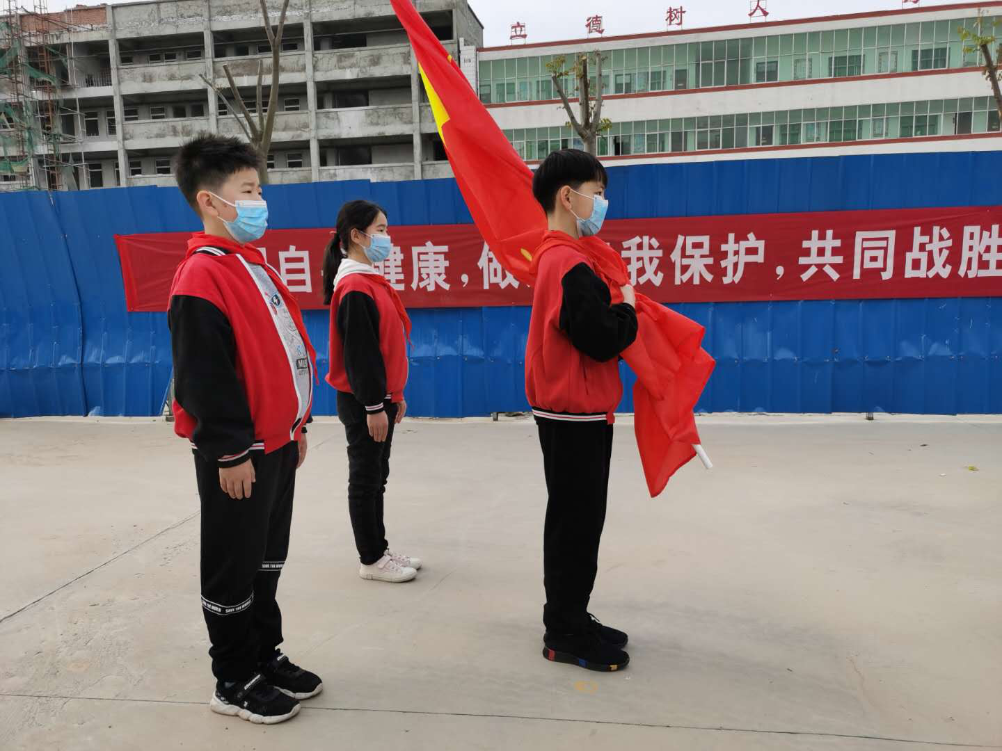 這是一次特殊的升國旗儀式,三名國旗手在操場上將五星紅旗冉冉升起,升旗實(shí)況同步轉(zhuǎn)播到教室內(nèi)的電視屏幕上,同學(xué)們在各自教室里面向國旗莊嚴(yán)肅立、齊唱國歌,面向國旗敬禮,在國旗下立下一個(gè)志,將來成為一個(gè)對社會有貢獻(xiàn)的人,能夠?yàn)樯鐣龀鐾怀龀煽兊娜恕?nbsp;