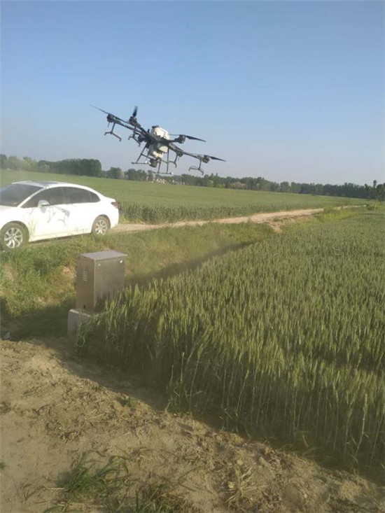 現(xiàn)在正值小麥孕穗抽穗期的關(guān)健時間節(jié)點(diǎn),也是各種病蟲害的高發(fā)期,做好這一時期的田間管理工作對確保小麥的豐收至關(guān)重要。將殺蟲劑、殺菌劑、微肥、抗旱劑等混合加水噴霧能同時實(shí)現(xiàn)防治小麥病蟲害,預(yù)防干熱風(fēng),防治倒伏和增加千粒重的效果。利用無人機(jī)作業(yè),提高了工作效率,提升了用藥效果,降低了勞動成本。