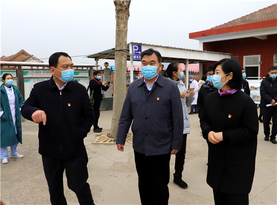(2020年2月26日,市委書記劉繼標(biāo)在鄲城縣虎崗鄉(xiāng)村衛(wèi)生室聽取羅文閣、李全林關(guān)于醫(yī)共體建設(shè)工作匯報(bào)。)