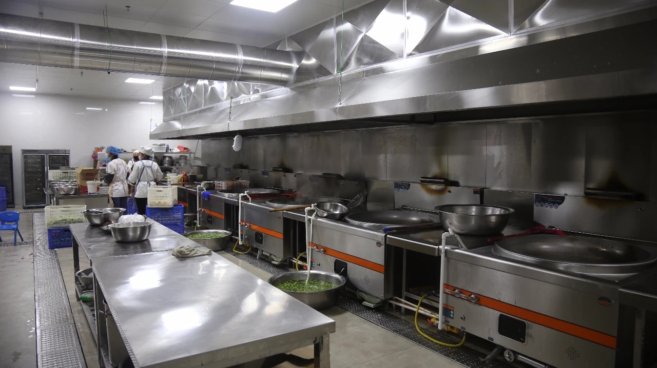 今年以來,學校投資3000萬元,新建一棟一萬平方米學生餐廳,按照明廚亮灶標準,購置了全套現(xiàn)代化餐飲設(shè)備,為學生加工、制作、烹飪餐飲食品。