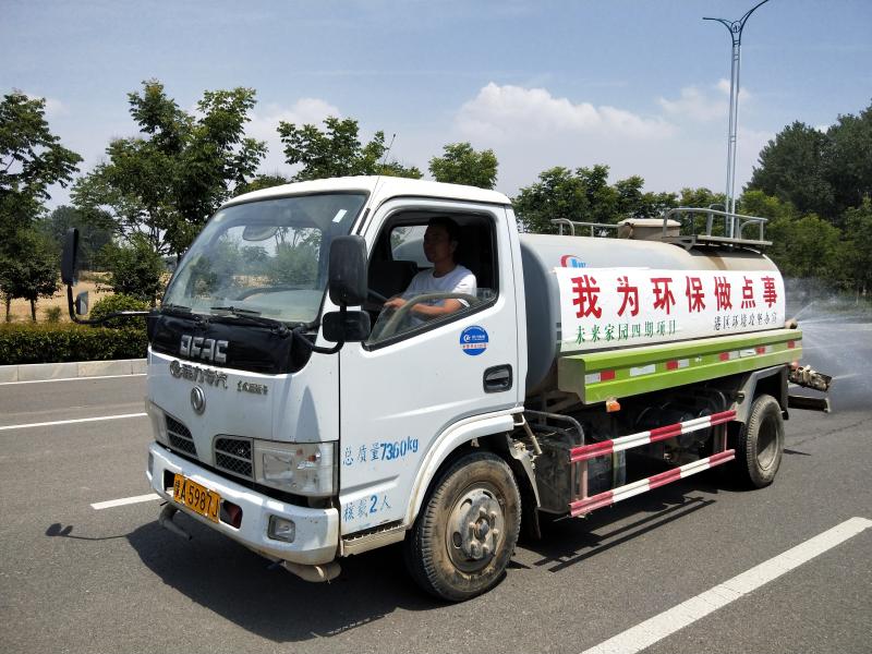 為了應對市政灑水車輛不足的問題,港區(qū)環(huán)境攻堅辦積極調(diào)動社會力量,助力環(huán)保攻堅。目前轄區(qū)已有12家施工單位的14輛灑水車輛加入到愛心車隊中,并在車身上印制了“我為環(huán)保做點事”的宣傳標語。