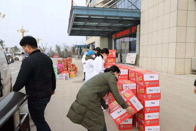 2月10日,佟桂枝了解到24小時(shí)堅(jiān)守在鄲城縣迎賓大道、各社區(qū)防控卡點(diǎn)的交警、疾控人員、社區(qū)干部們不僅冒著被感染的風(fēng)險(xiǎn)守護(hù)著人民群眾的健康安全,而且物資緊缺,生活艱辛,她的心又一次被深深地觸動(dòng)。佟桂枝立即召集部分員工主動(dòng)申請(qǐng)參與愛心志愿活動(dòng),向迎賓大道值勤卡點(diǎn)、新城辦事處丁老家社區(qū)等處送去大量愛心物資,為解決卡點(diǎn)執(zhí)勤人員的一日三餐問題盡綿薄之力。