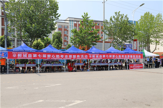 7月7日,全國(guó)高考進(jìn)行時(shí)。鄲城縣為大力弘揚(yáng)“奉獻(xiàn)、友愛(ài)、互助、進(jìn)步”的志愿服務(wù)精神,由中共鄲城縣委宣傳部、共青團(tuán)鄲城縣委聯(lián)合主辦,鄲城縣青年志愿者協(xié)會(huì)承辦,鄲城縣農(nóng)信社獨(dú)家贊助的愛(ài)心助考志愿服務(wù)活動(dòng)在全縣6個(gè)考點(diǎn)順利開(kāi)展,身著紅馬甲的志愿者們成為服務(wù)高考的亮麗風(fēng)景線。