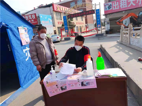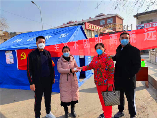 防疫物資緊缺是開展防疫工作面臨的共同難題。王七峰在防疫工作開始后,第一時(shí)間向城南辦事處捐助資金5萬元,并發(fā)動(dòng)親屬積極捐款,其三哥王永紅捐助資金2萬元支持城南辦事處疫情防控工作,14歲的侄子王璽博也將自己的5000元壓歲錢捐了出來,為抗擊疫情助力。之后,王七峰除了統(tǒng)籌村里的防疫工作外,每天早上6點(diǎn),還會準(zhǔn)時(shí)到村里各個(gè)防控點(diǎn)或巡查或值守,始終堅(jiān)守在排查登記、區(qū)域防控第一線。有了王七峰的帶頭表率,該村的干部、黨員、志愿者紛紛加入抗疫隊(duì)伍中來,村民們也是有錢出錢、有力出力,大家眾志成城,有效落實(shí)了聯(lián)防聯(lián)控、群防群治的各項(xiàng)措施。