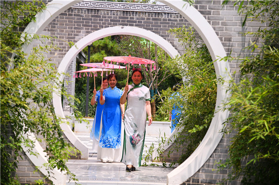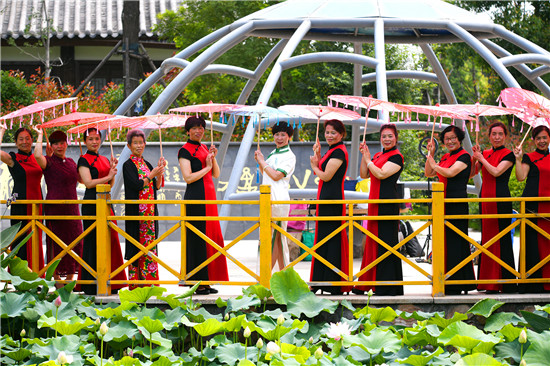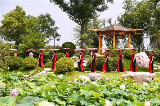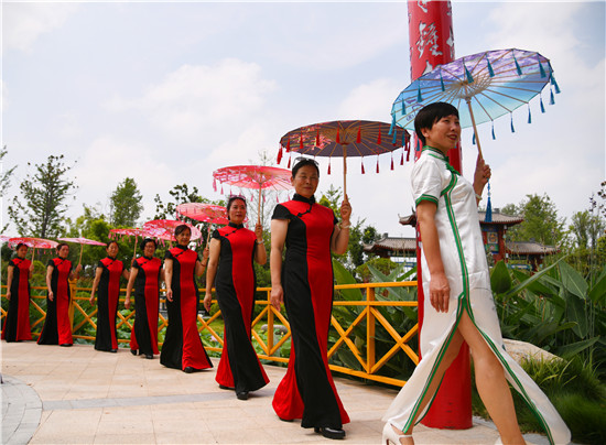 周口森林公園經(jīng)過近年的建設已經(jīng)成為市區(qū)休閑的一處好去處,風景優(yōu)美,園林幽深,目前,盡管森林公園附近道路施工,進出還不方便,但是仍吸引著很多居民前去休閑游玩,愛美的大媽們更是在這里秀一把,7月16日上午,來自市區(qū)模特隊的大媽們,穿著靚麗的旗袍,在荷葉飄香、假山園林秀林深處,開心地進行一場模特秀。