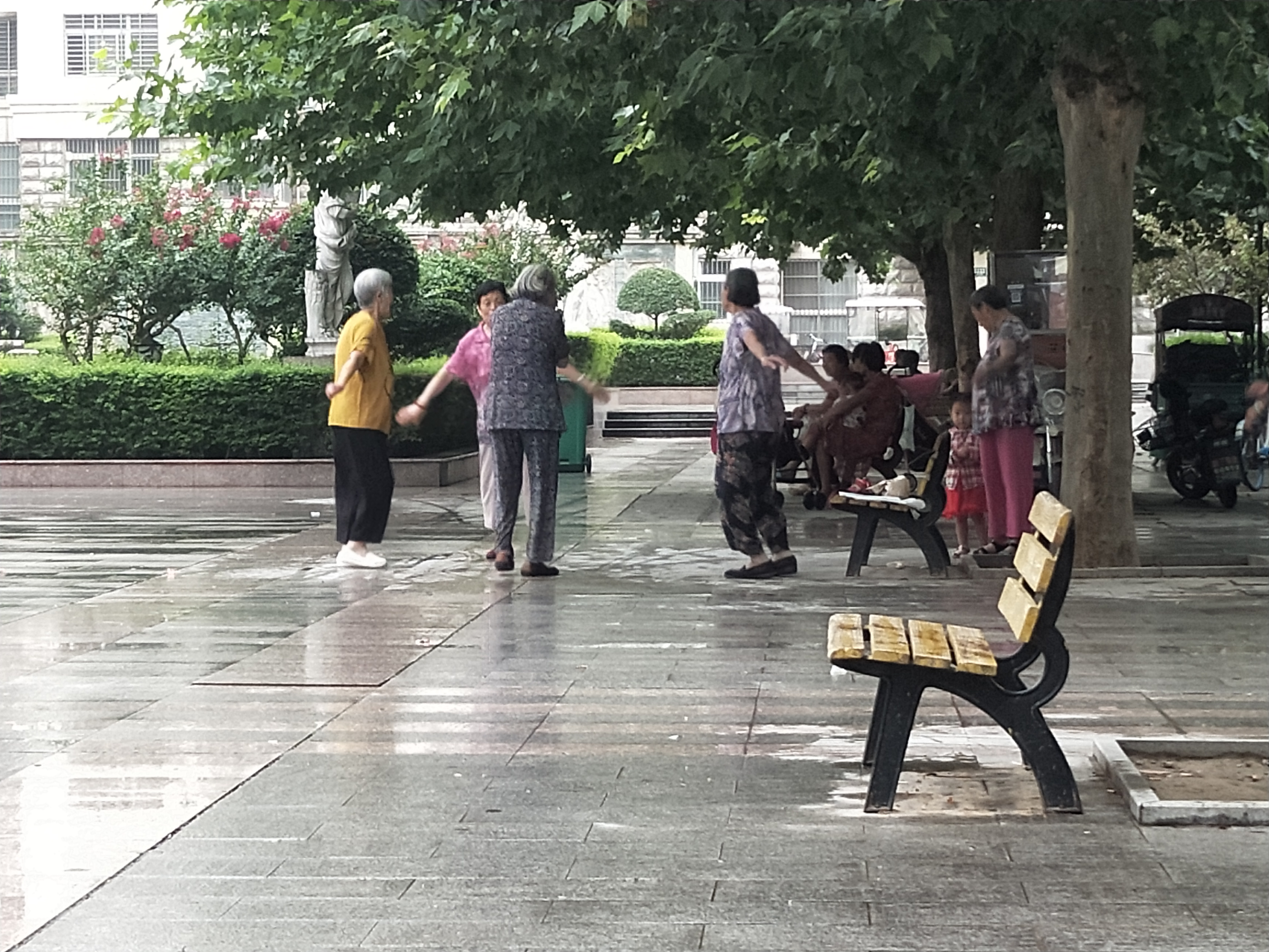 上午8點(diǎn),天空隱約下著小雨,記者在北門小區(qū)廣場的噴泉旁邊轉(zhuǎn)轉(zhuǎn)。幾位70多歲的老人坐在排椅上,音響里傳來很大的戲曲聲回蕩在廣場上。“最多時(shí)有十幾個(gè)人吧,每天早上8點(diǎn)左右開始做操,音響聲音調(diào)得比較大,我家恰好就在這噴泉廣場西邊,在家里聽得很清楚。”李女士講,由于工作原因,她經(jīng)常上夜班,想睡個(gè)好覺也不能如愿,她也向物業(yè)反映過,可是一直沒有什么效果。