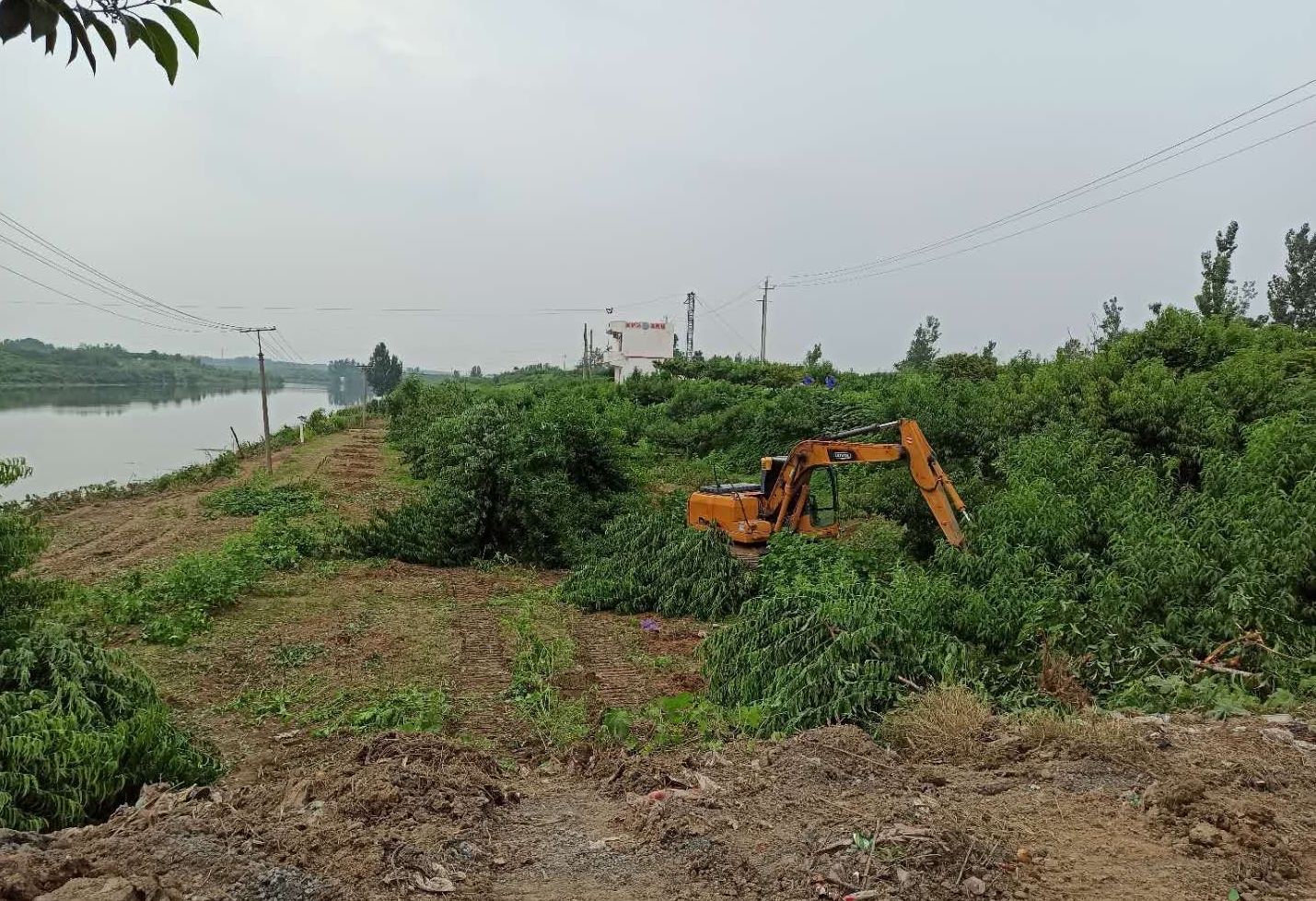 同時(shí),該縣以《水法》《防洪法》《河道管理?xiàng)l例》等法律法規(guī),以及中共中央辦公廳、國務(wù)院辦公廳《關(guān)于全面推行河長制的意見》《河南省全面推行河長制工作方案》《河南省總河長令(第2號)》《河南省持續(xù)開展河湖“清四亂”行動方案》等重要文件為依據(jù),對河道管理范圍內(nèi)“四亂”問題進(jìn)行依法清理整治。潁河黃橋閘上下游灘地存在阻水林木,屬“亂占”行為。黃橋鄉(xiāng)政府與河道管理部門實(shí)地查看,制定清理方案,劃出清理范圍線,按照潁河防洪要求和管理實(shí)際情況,對潁河保證水位線以下高桿作物,樹木全部清理,確保防洪安全。目前,按照清理范圍,潁河黃橋管理段日出動挖掘機(jī)械四臺,已清理桃樹170棵、楊樹40棵、梧桐樹110棵、雜樹7畝,清理河道長1200米。