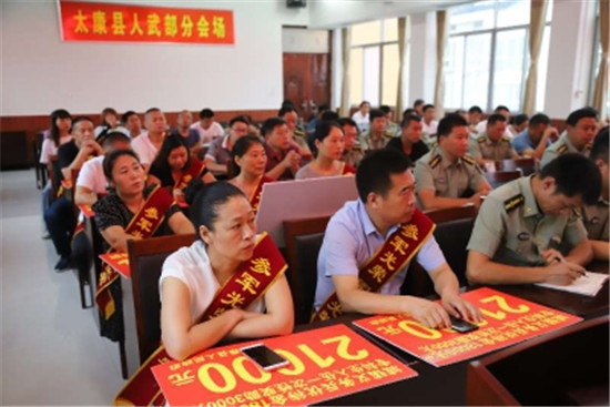 太康縣還隆重舉行了2020年義務(wù)兵家屬優(yōu)待金集中發(fā)放儀式??h委、縣政府高度重視現(xiàn)役軍人權(quán)益保障,7月30日,在縣人武部國(guó)防教育中心舉行了2020年義務(wù)兵家屬優(yōu)待金集中發(fā)放儀式,按照義務(wù)兵家屬優(yōu)待金發(fā)放標(biāo)準(zhǔn),將所有優(yōu)待金全部足額發(fā)放到位。前來(lái)參加儀式的家屬們披紅帶花,氣氛熱烈,營(yíng)造了“一人參軍、全家光榮”的濃厚氛圍,進(jìn)一步激發(fā)了廣大青年學(xué)子參軍報(bào)國(guó)熱情。