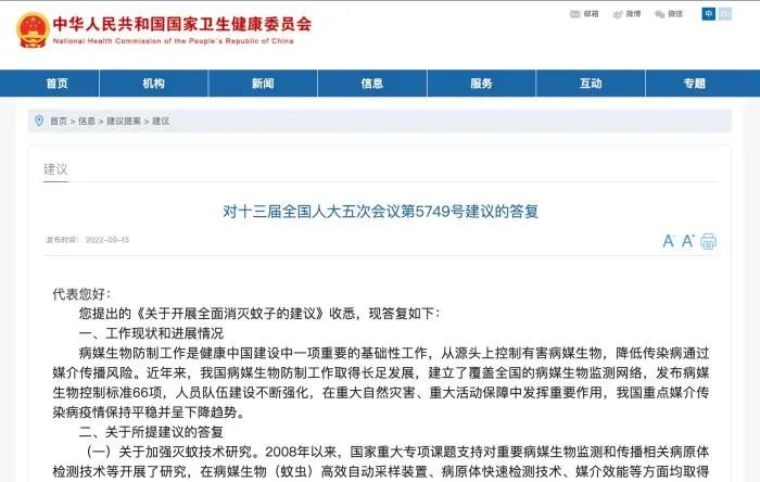 • 近日,一則全國人大代表提出全面消滅蚊子的建議得到了國家衛(wèi)健委的答復(fù)。很快,各種爭議也隨之而來。有人認(rèn)為,蚊子是自然界和生態(tài)系統(tǒng)的一員,存在有其合理性;也有人認(rèn)為,蚊子是害蟲,是疾病傳播的元兇之一,應(yīng)該“除之而后快”。