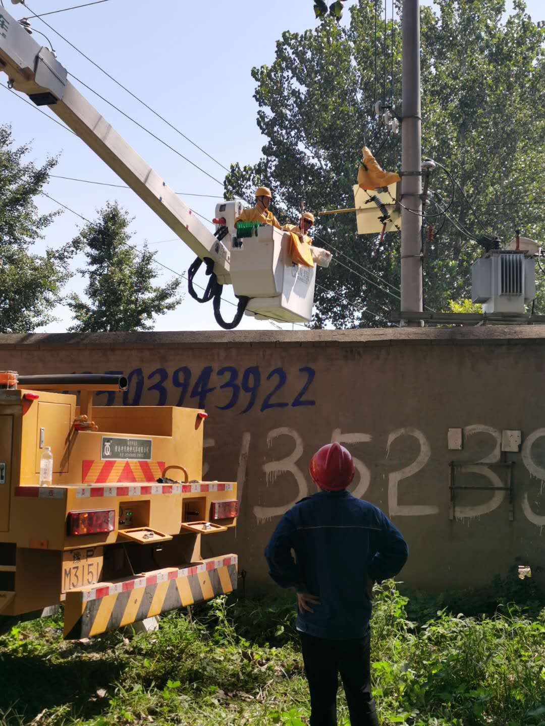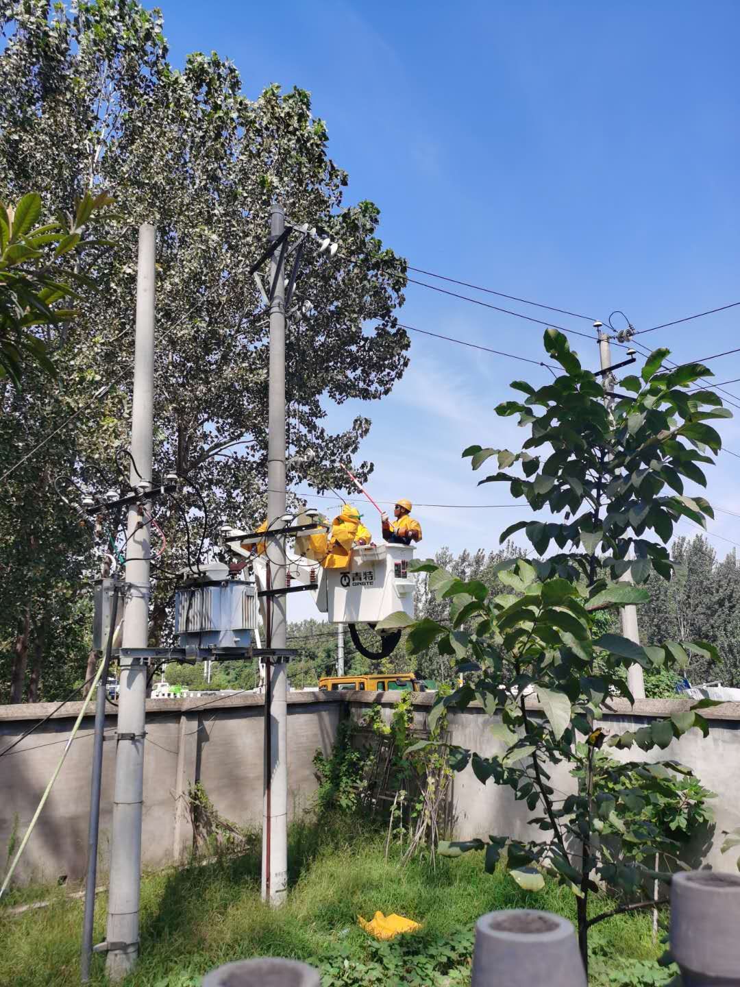 9月5日中午,“秋老虎”發(fā)威,燠熱難耐。國網(wǎng)西華縣供電公司城關(guān)供電所工作人員穿著長袖工作服,頭戴安全帽,冒酷暑進(jìn)行高空搶修作業(yè)。